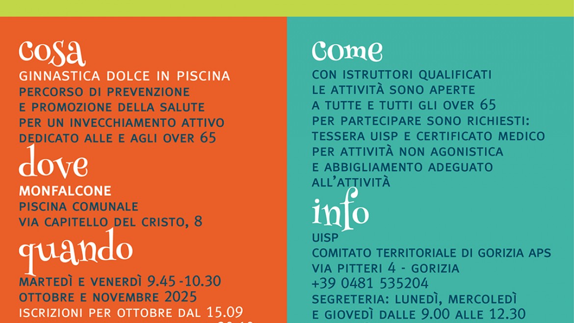 Assieme Attivi Ginnastica Dolce Over 65 Articolo del 15/09/2025 ‹ › × × Ginnastica dolce in piscina: percorso di prevenzione e promozione della salute per un invecchiamento attivo dedicato agli over 65. Iscrizioni entro il 15-09 ed entro il 20-10 Commenti Abilita JavaScript per visualizzare i commenti tramite Disqus.